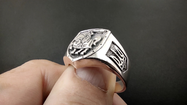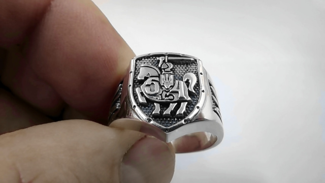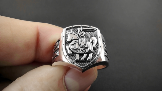 Перстень ′54 ОМБр′ виготовляється під замовлення, ручна робота. Застосовується чорніння. За бажанням замовника можлива персоналізація - гравірування позивного внизу персня.