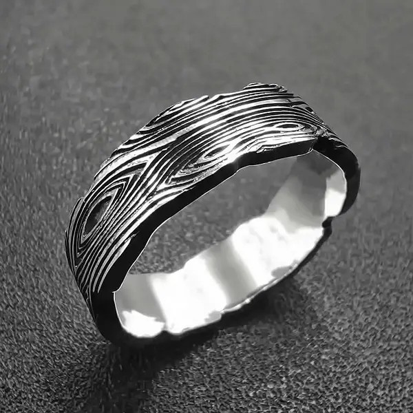 Кільце "Дух Лісу" імітує текстуру дерева і виготовляється з бронзи або срібла. У нас також можна придбати інші обручки в рослинному стилі.