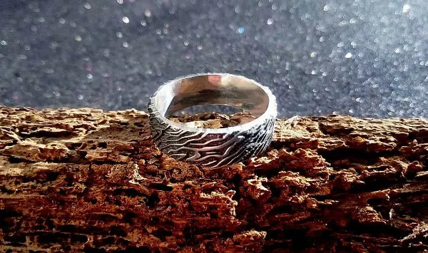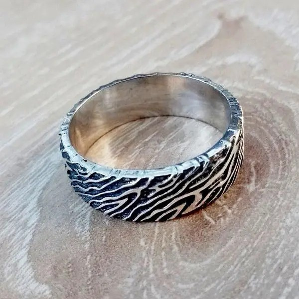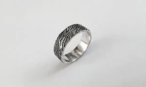 Кільце "Дух Лісу" імітує текстуру дерева і виготовляється з бронзи або срібла. У нас також можна придбати інші обручки в рослинному стилі.