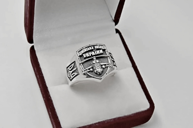 Перстень "Армійська Авіація України" (срібло)Матеріал: Срібло 925 проби.Вага орієнтовно 12 гр (залежить від розміру)Розмір на замовлення.