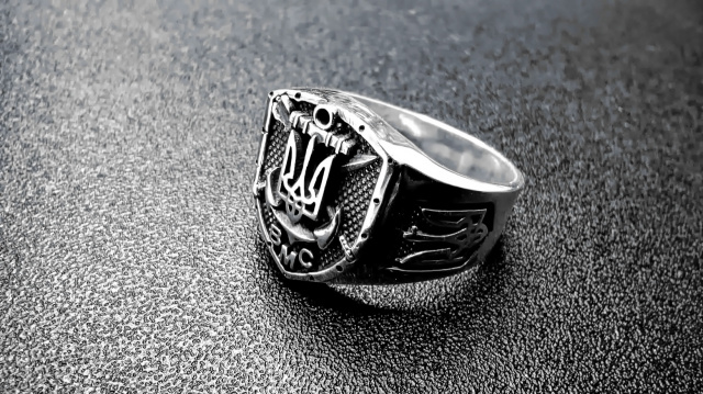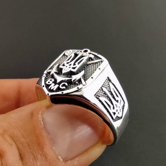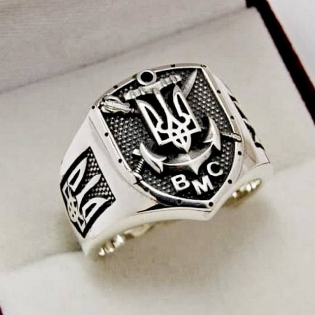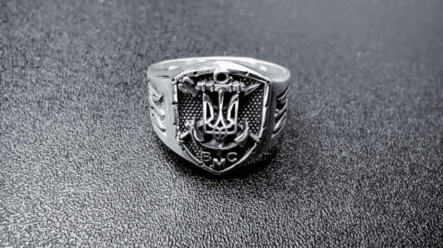 Матеріал: Срібло 925 проби Вага 13 гр (залежить від розміру) Розмір на замовлення. Перстень Військово Морських Сил України виготовляється на замовлення з срібла. Можлива персоналізація - гравірування позивного внизу персня.