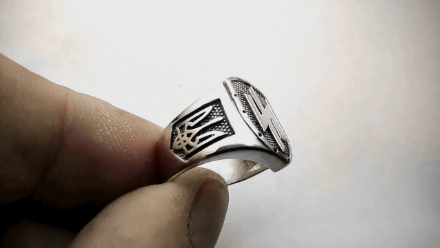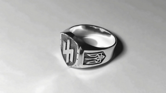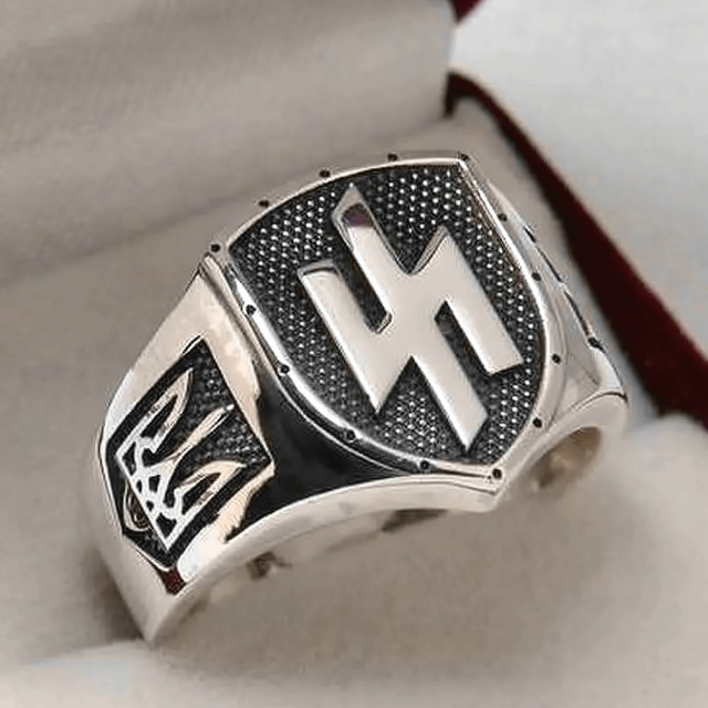 На персні зображено символ "Ідея Нації". По боках персня Тризуби. Також робимо варіант печатки БЕЗ тризубів по боках. Можлива персоналізація - гравірування позивного внизу персня.