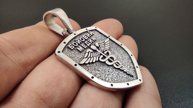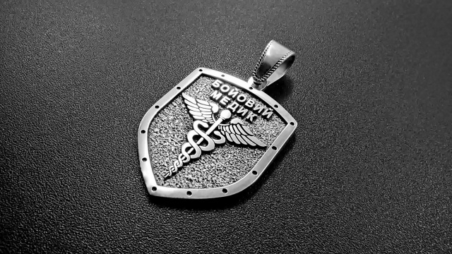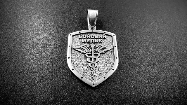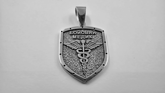 Кулон "Бойовий Медик" виготовляється з срібла або бронзи на замовлення. Можлива персоналізація - гравірування додаткової інформації на внутрішній частині кулона - позивний, група крові тощо.