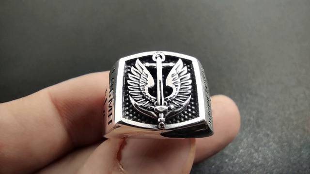 Перстень "1 ОБМП - Вірний Завжди" має зображення емблеми Морської Піхоти в верхній частині і написи "1 ОБМП" та "Вірний Завжди" по боках. Виготовляється на замовлення. Також можлива персоналізація - гравірування позивного внизу персня.