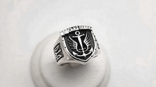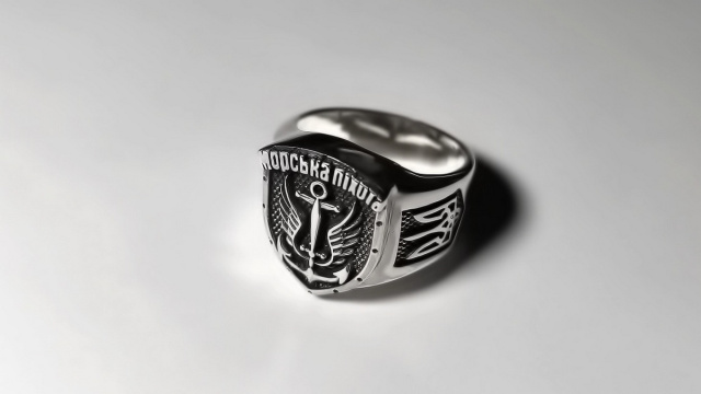 На перстні зображено символ Морської піхоти ЗСУ і напис "Морська Піхота". По боках персня Тризуби.