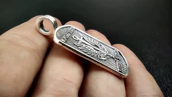 Можлива персоналізація - гравірування позивного, групи крові чи іншої інформації на зворотньому боці кулона. Також у нас можна замовити шнурок з авторськими замочками