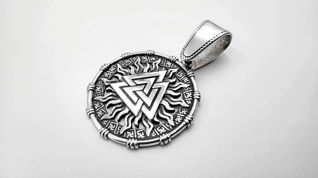 Кулон - Оберіг "Валькнут в Сонці" (срібло, великий)
