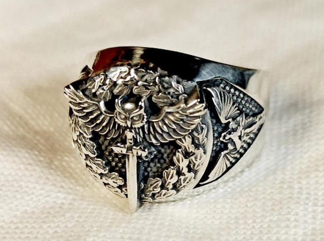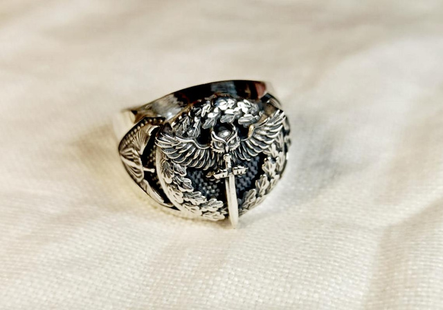 Матеріал: срібло 925 проби Вага орієнтовно 12 грам (залежить від розміру) Розмір на замовлення. Виготовляється на замовлення. Можлива персоналізація - гравірування позивного внизу персня.