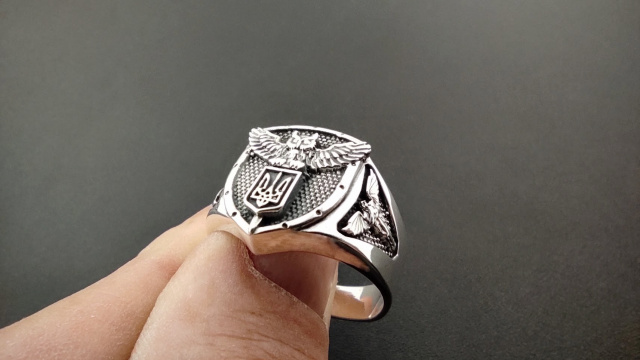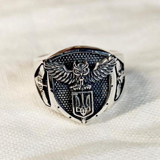 Матеріал: срібло 925 проби Вага орієнтовно 12 грам (залежить від розміру) Розмір на замовлення. Виготовляється на замовлення. Можлива персоналізація - гравірування позивного внизу персня.