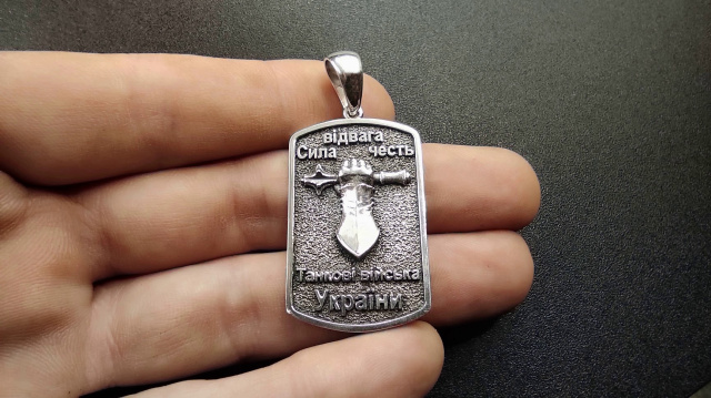 Може бути виготовлений з бронзи або срібла. Також у нас можна замовити шнурок з високоякісного синтетичного матеріалу і срібними, авторськими замочками з Тризубом, Цвітом Папороті або іншими символами. Увага! Можлива персоналізація! Можемо з протилежного боку зробити лазерне гравірування з інформацією, наприклад група крові, Позивний тощо.